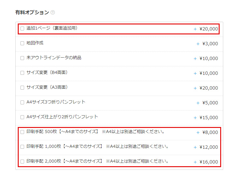 標準(表面のみ)20,000円+追加1ページ(裏面追加)20,000円 合計40,000円