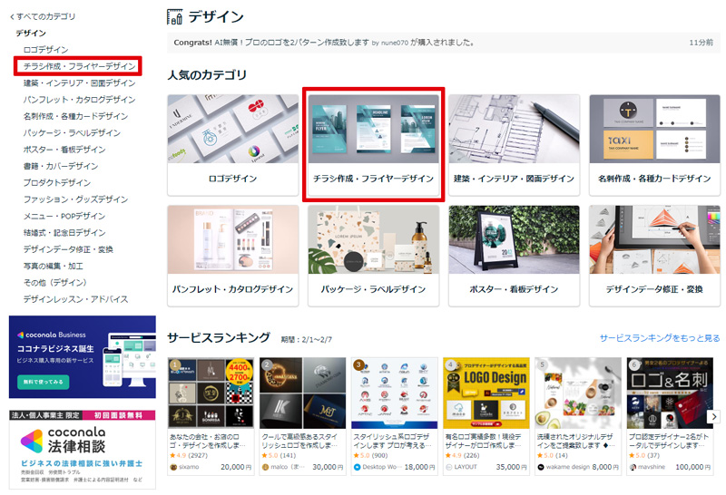 次に「チラシ制作・フライヤーデザイン」を選択します。