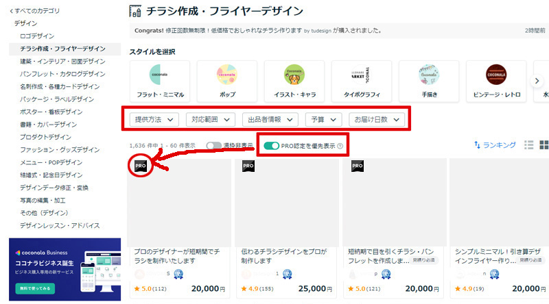 なお、私のおすすめの方法は【PRO認定を優先表示】をONにして検索することです。